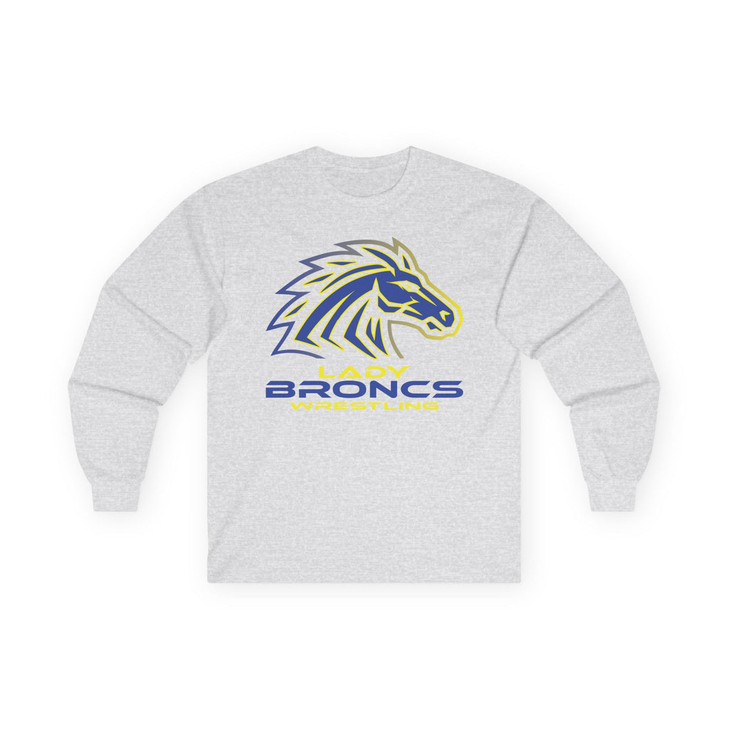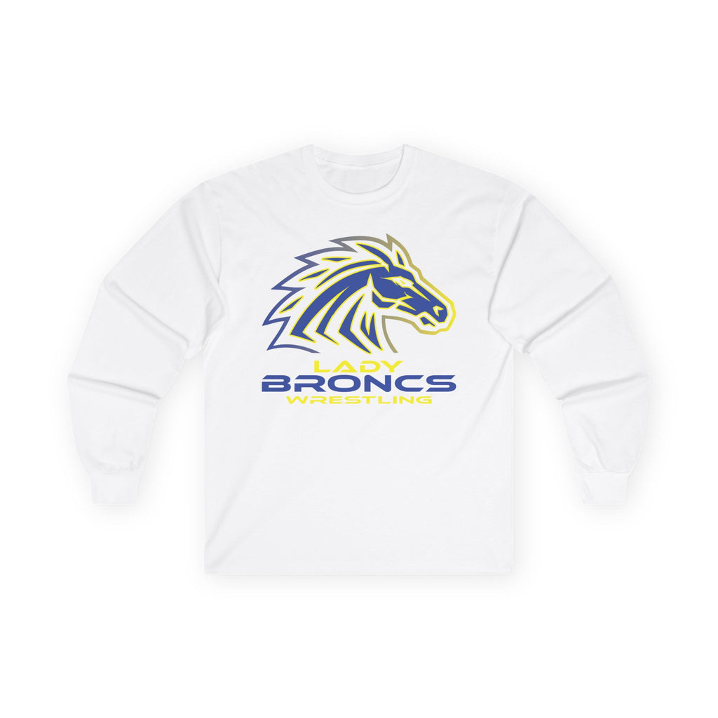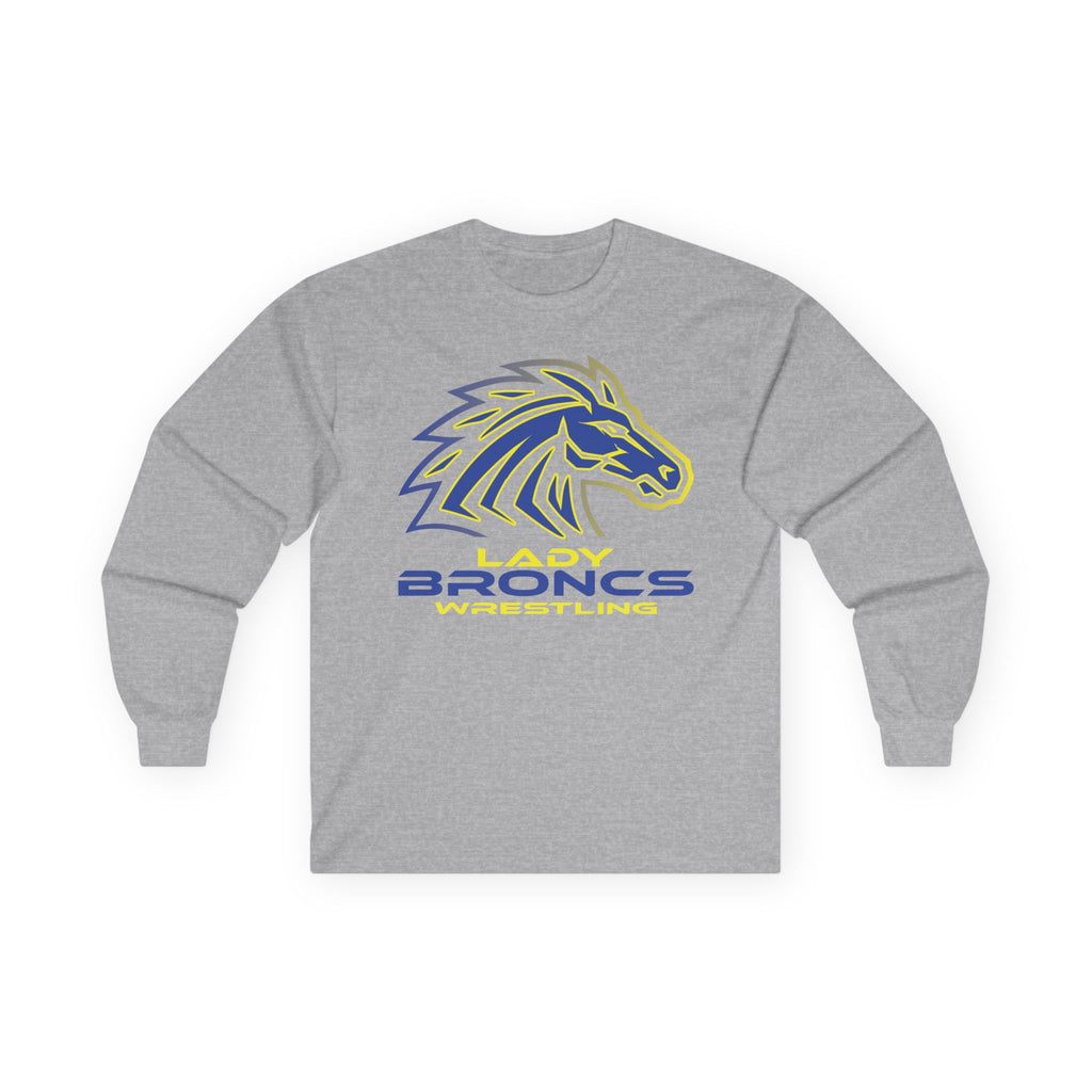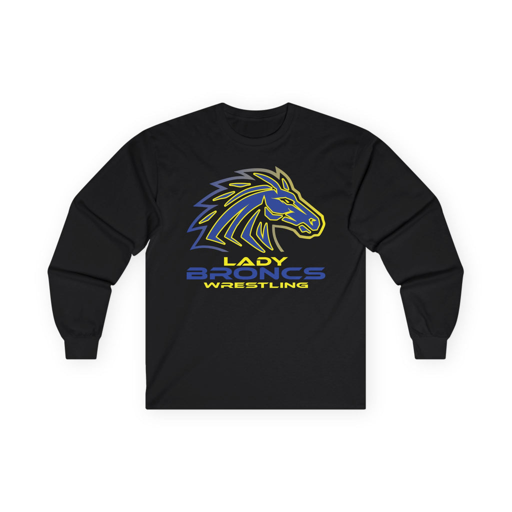 This Sheridan Lady Broncs Wrestling Long Sleeve Tee is perfect for wrestling fans who want to show their support for the team. The design gives off a sporty and energetic vibe, making it great for casual wear or attending wrestling matches. This Long Sleeve Tee is suitable for adults and is made of environmentally-friendly cotton, providing a vintage feel. It is ideal for holidays and occasions celebrating school sports and team spirit.